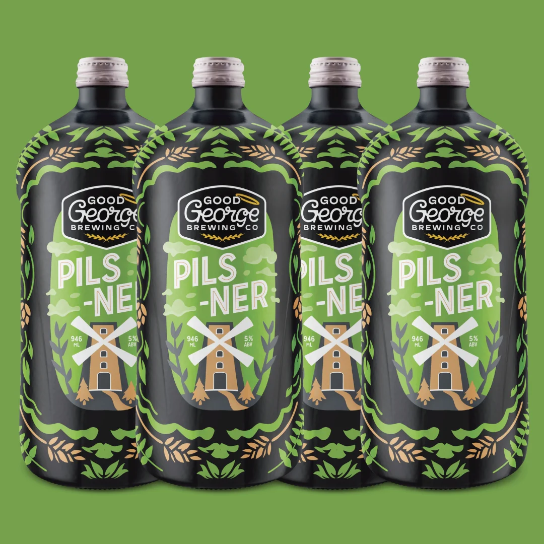 Enjoy your choice of Good George Squealers. Fresh brews ready to share in the Summer.